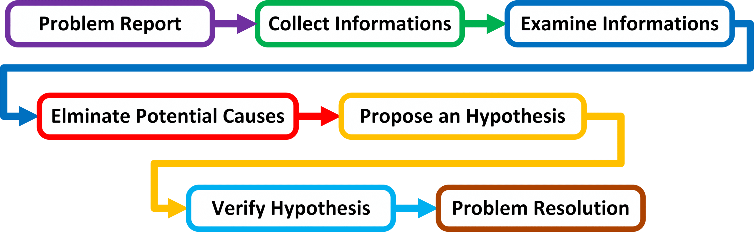 Propose an Hypothesis – Wysnucie hipotezy co do przyczyny powstania problemu na podstawie zebranych informacji.