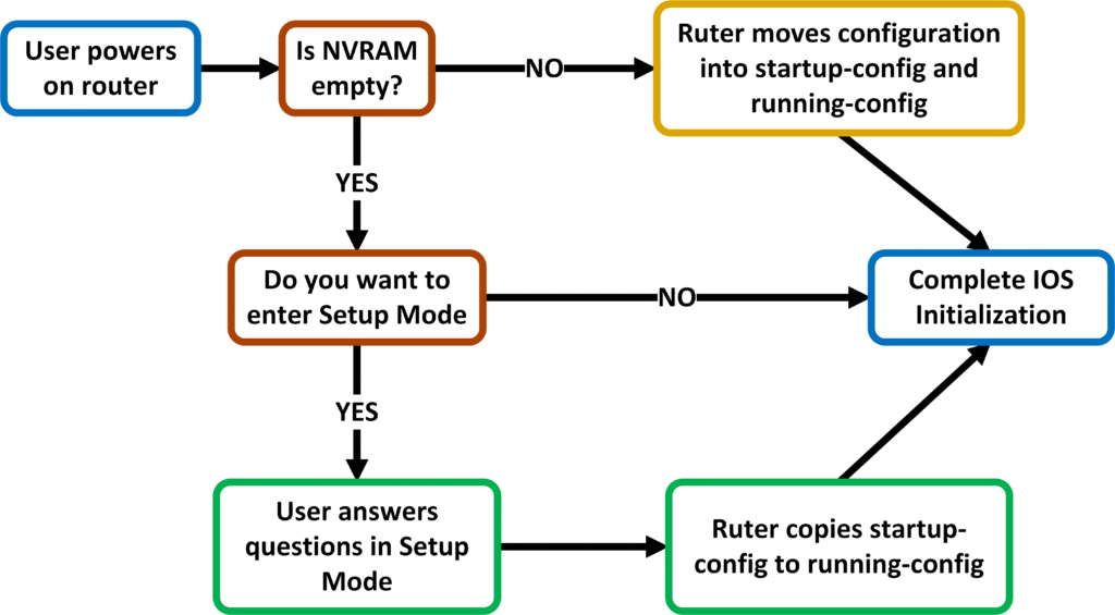 Po załadowaniu systemu IOS urządzenie pobiera konfiguracją „startup-config” z pamięci NVRAM do pliku „running-config” zlokalizowanego w pamięci RAM.