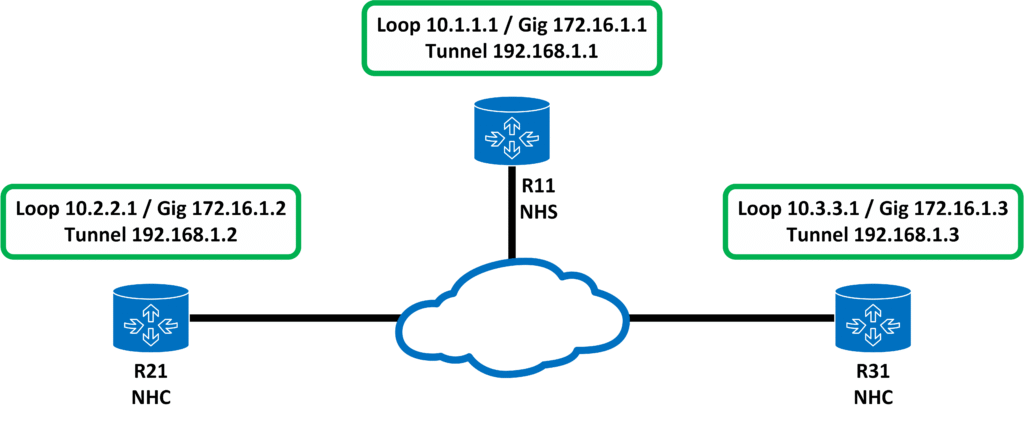 Określa adres IP, przynajmniej jednego rutera pełniącego rolę NHS. Adres NHS odnosi się do adresu IP skonfigurowanego na interfejsie wirtualnym (GRE), natomiast adres NBMA określa adres IP sieci wielodostęp-owej (Przeważnie będącej siecią publiczną).